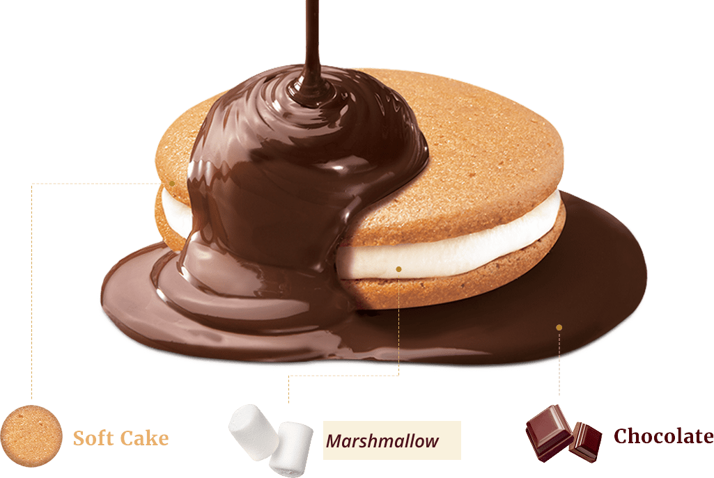 Cemilan premium dengan perpaduan rasa yang sempurna antara lembutnya keik vanila, kenyalnya marshmallow, serta tebalnya lapisan luar kaya dengan cokelat premium yang terjamin kualitas dan kelezatannya.